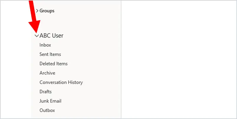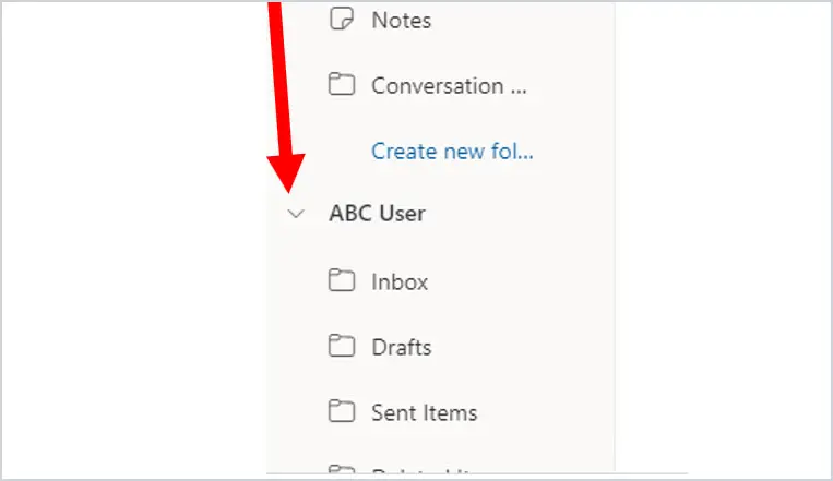 Now you will see ABC User show up in the list on the left-hand side of the screen. Click the down arrow to access the mailbox. With this access, you can do everything the owner can do with the mailbox.