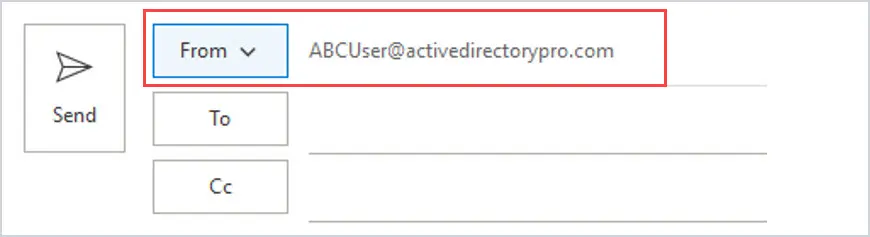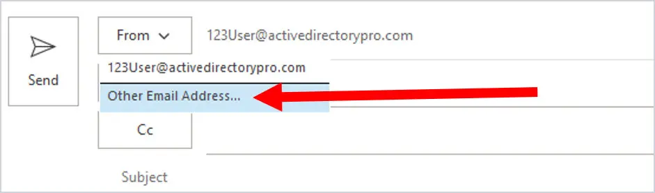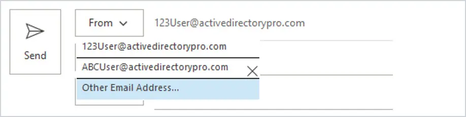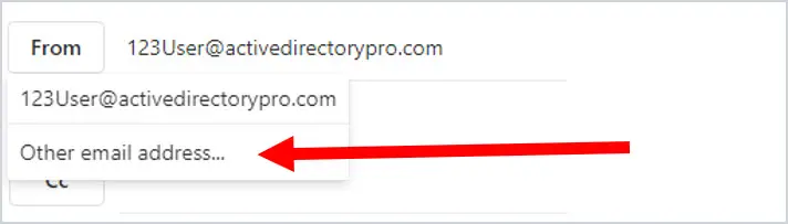 2. Where it shows 123User@activedirectorypro.com, click on From, then select Other email address.