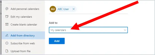 1. Click on Calendar, then click on Add Calendar. Select Add from the directory on the left-hand side. Type in ABC to search for the calendar, then click on the mailbox.