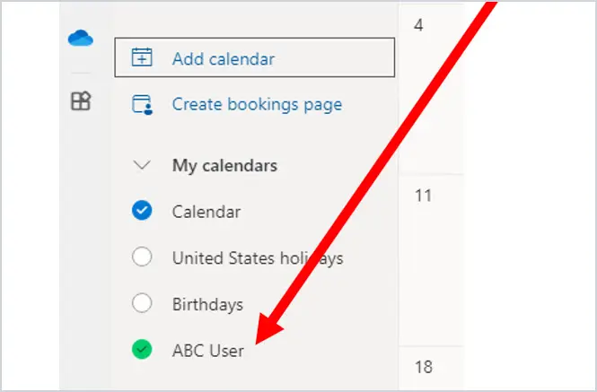 With a checkmark beside both calendars, you will see the schedule of both 123 calendar and the ABC User calendar. If you do not wish to see the ABC User calendar, you can just uncheck it.