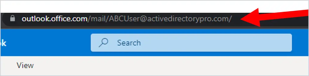 The ABC User’s mailbox will be opened in a new window. You can verify the mailbox is that of ABC User by looking at the address line. You will see ABCUser@activedirectorypro.com in the address.