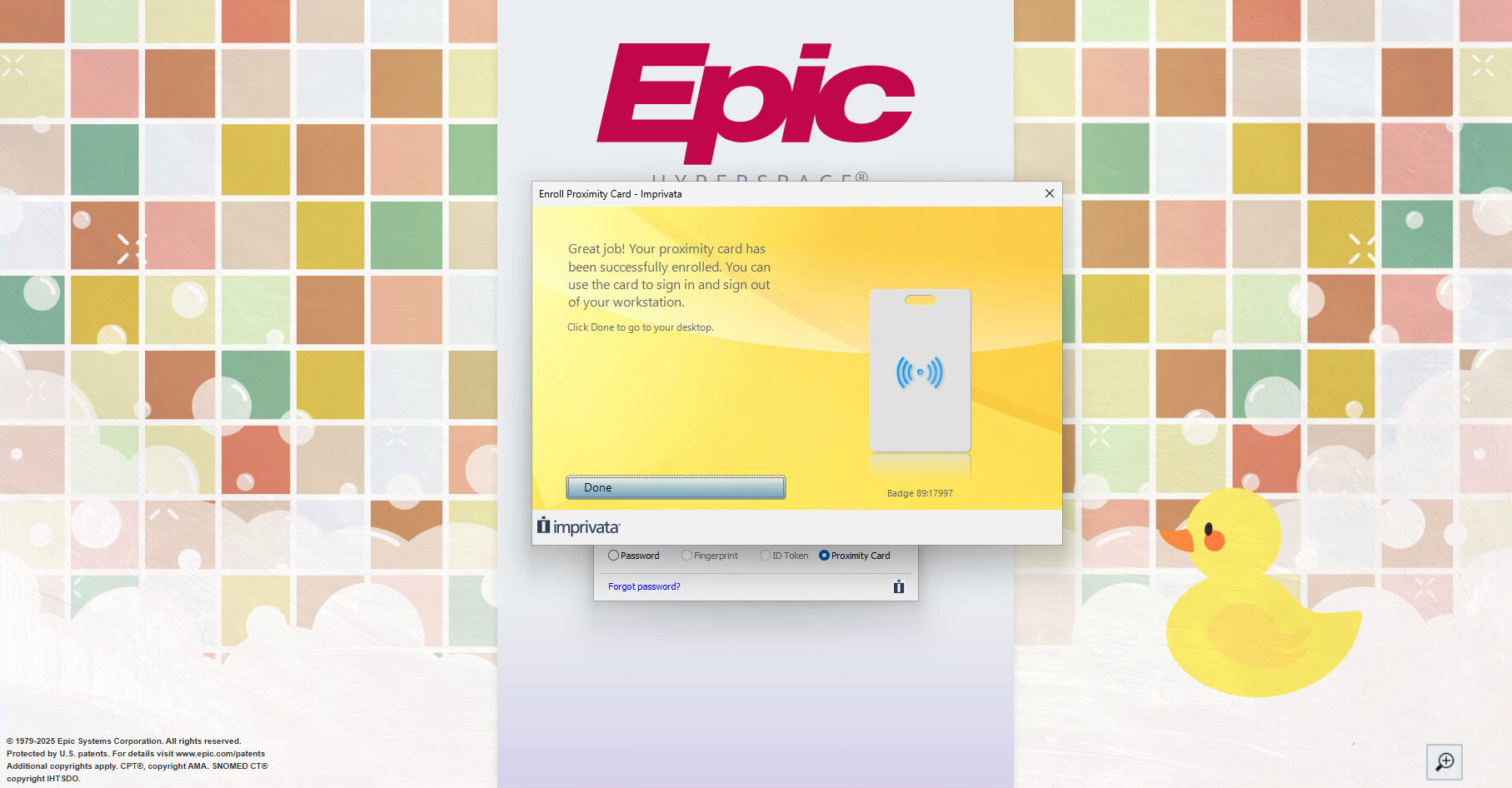 From here you are all good to go! With this you can tap your badge to sign into Epic, or once in epic tap it again to secure the session and let someone else tap over to keep session context.